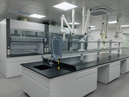 9 .通風柜之下柜體,左側具有通風換氣功能可放置試劑;右側單柜為水、氣系統容納柜,嚴禁放置任何具腐蝕性物質;